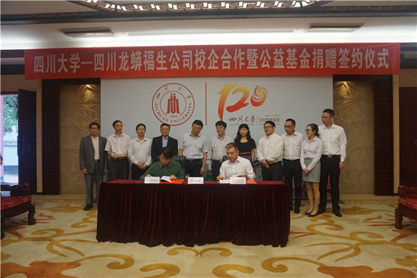 在120周年校庆即将来临之际,9月19日下午,威尼斯9499登录入口-四川龙蟒福生科技有限责任公司共建“双创”基金签约仪式暨公益基金捐赠仪式在望江校区明德楼贵宾厅举行。四川龙蟒福生科技有限责任公司总经理刘健、总工程师王涛、总经理助理杨宝强等一行,威尼斯9499登录入口副校长李旭峰教授、副校级干部侯太平教授、学校有关单位负责人以及威尼斯9499登录入口领导班子参加了签约仪式。威尼斯9499登录入口副校级干部侯太平教授主持签约仪式。
