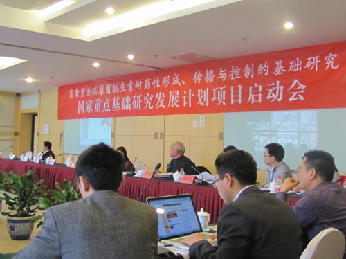 国家重点基础研究发展计划(973计划)项目《畜禽重要病原菌抗生素耐药性形成、传播与控制的基础研究》启动会于2013年3月19日在北京举行。科技部基础研究管理中心钱万强处长、科技部科技司基础处张安平副处长、中国农业大学副校长李召虎、科研院常务副院长胡小松等领导莅临会议并致辞。启动会邀请了中科院水生生物研究所朱作言院士、河南省农业科学院张改平院士、西南大学张家骅教授、南京农业大学陈杰教授、清华大学张荣庆教授、国家食品安全风险评估中心吴永宁研究员、中国农业科学院上海兽医研究所童光志研究员、扬州大学秦爱建教授等专家对项目进行指导。