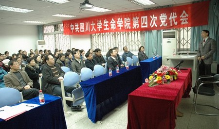 2011年12月9日下午2:00,中共威尼斯9499登录入口生命学院第四次党代会在生命科学楼二楼大会议室隆重召开,莅临本次大会的嘉宾有校长助理、校党委组织部部长李旭峰教授、组织部副部长管清贵同志、组织部组织科科长唐锐同志。会议由院党委副书记廖爱民副教授主持。大会由预备会议、审议报告、分组讨论和选举共四个阶段组成。