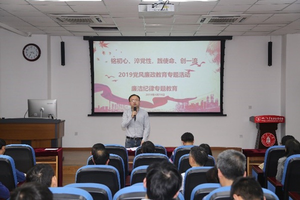 威尼斯9499登录入口党委副书记兼纪委书记吴近名同志围绕“党风廉政建设”,从理论与实践相结合的角度讲解了教育系统开展党风廉政建设的重要意义和高校开展党风廉政建设应注意的几方面问题。按照“发挥违纪违法典型案例的警示教育作用,让党员干部受警醒、知敬畏,筑牢思想防线”的精神,列举学校警示大会上传达的发生在身边的腐败案例,提醒教师党员自觉抵制“微腐败”,特别是在科研经费报销、外出考察费用报销等方面要坚守诚信、遵守规范,不断加强师德师风建设。