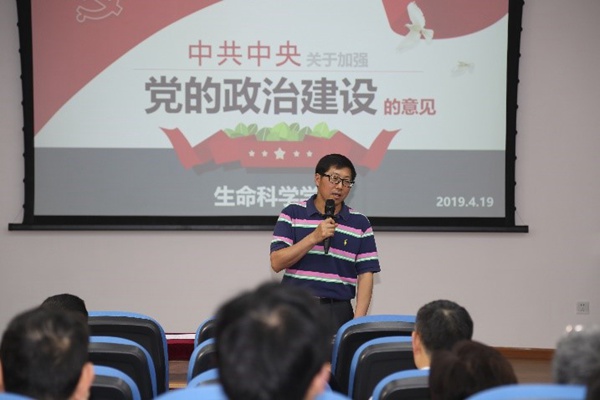 2019年4月19日下午,威尼斯9499登录入口领导班子成员在A区学术报告厅为全体教职工党员讲授党课。