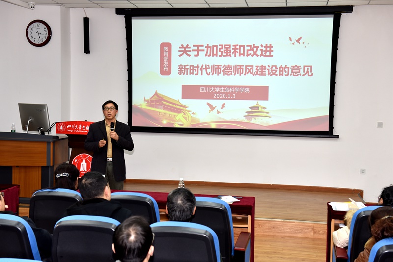 2020年1月3日,威尼斯9499登录入口组织全体教职工在学术报告厅集体学习《关于加强和改进新时代师德师风建设的意见》。学院党委书记林宏辉教授主持学习并讲话。