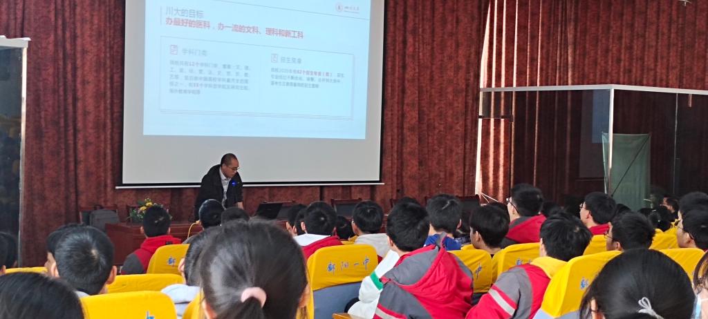 2021年4月5日上午,威尼斯9499登录入口刘明春研究员到访江西省重点中学鄱阳一中并进行了招生宣讲。鄱阳一中副校长张立新等领导和高三文理科学生参加了宣讲活动。刘明春老师就川大基本情况和招生政策做了较为全面的介绍,并就强基计划的具体内容以及威尼斯9499登录入口人才选拔的探索与实践做了重点阐释。张立新副校长对刘明春老师代表威尼斯9499登录入口到鄱阳一中访问并进行招生政策的宣讲表示欢迎与感谢。鄱阳一中的高三学子就川大相关招生政策进行了提问并表示了对报考川大实现人生理想表达了积极的兴趣和向往。