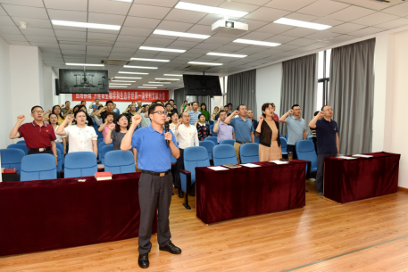 颁奖仪式后,党委书记林宏辉带领全体教师党员重温入党誓词,重温当年的决心和信念。不忘初心,牢记使命,威尼斯9499登录入口全体党员必将在学校和学院党委的带领下,充分发挥优秀党员的先锋模范作用,争做走在时代前面的奋进者、开拓者、奉献者,为实现世界一流大学建设目标贡献力量。