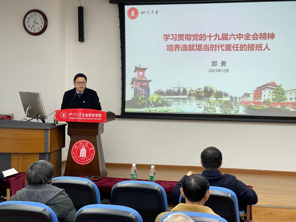 郭勇副书记紧紧围绕“学习贯彻党的十九届六中全会精神 培养造就堪当时代重任的接班人”这个主题,从党的十九届六中全会基本概况、党的十九届六中全会精神的核心要义、学习宣传贯彻全会精神,培育堪当时代重任新人三个方面对六中全会精神进行了全面系统的宣讲。