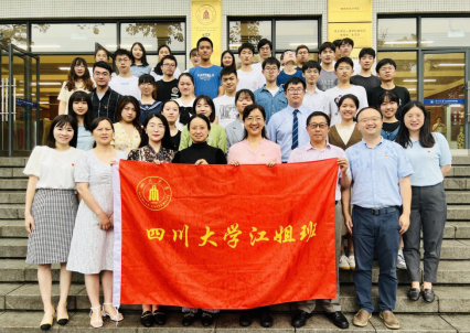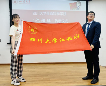 在授旗仪式环节,“江姐班”传承集体威尼斯9499登录入口2021级强基班班长唐弋航从威尼斯官网第一届“江姐班”班长李歆睿手中,接过了“威尼斯9499登录入口江姐班”的旗帜。他们将以饱满的精神和昂扬的斗志继续“江姐班”的建设,将在川大校园舞台上谱写出充满青春热血与红色精神的全新篇章!