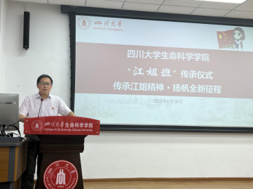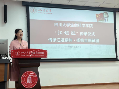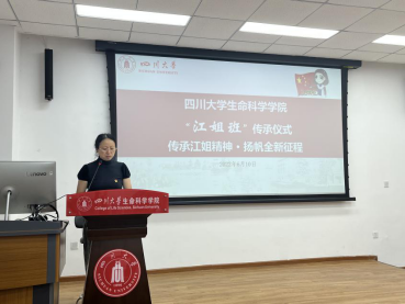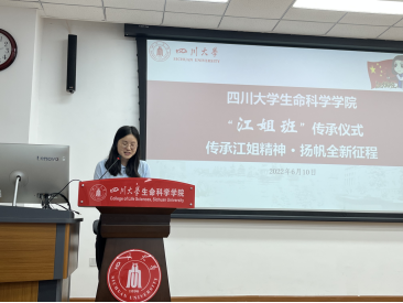学工部副部长、“玉章书院”分管领导,卢莉副部长发言中提出:将从四个重要方面深化“又红又专”建设,要与生命科学院携手,同建好新一届“江姐班”。她现场向2021级强基班学生发问:有没有信心接过“江姐班”的接力棒?同学们以响亮地声音给出了答案——“有”!
