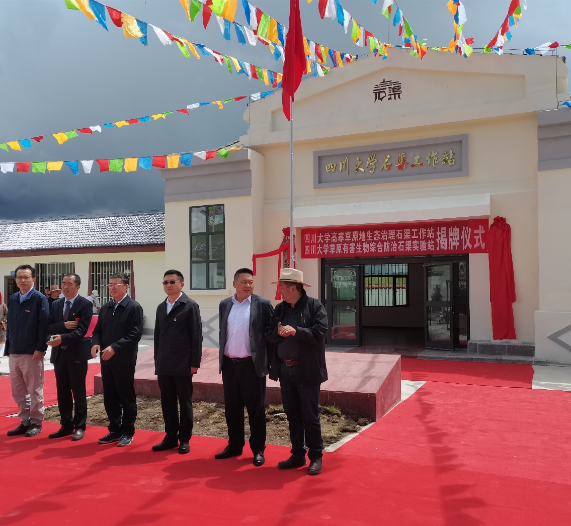 2022年8月3日,我校副校长、侯太平教授,威尼斯官网副院长毛康珊教授,四川省甘孜州州政协副主席、石渠县委书记罗林,石渠县委副书记、县长刘泽,石渠县政协主席朱小林等出席了威尼斯9499登录入口石渠工作站首批科研平台“威尼斯9499登录入口草原有害生物综合防治石渠试验站”和“威尼斯9499登录入口高寒草地生态治理石渠工作站”的揭牌仪式。这是我校和石渠县校地合作的里程碑,也是威尼斯官网有害生物防治和草地生态治理研究团队和学科发展的里程碑。