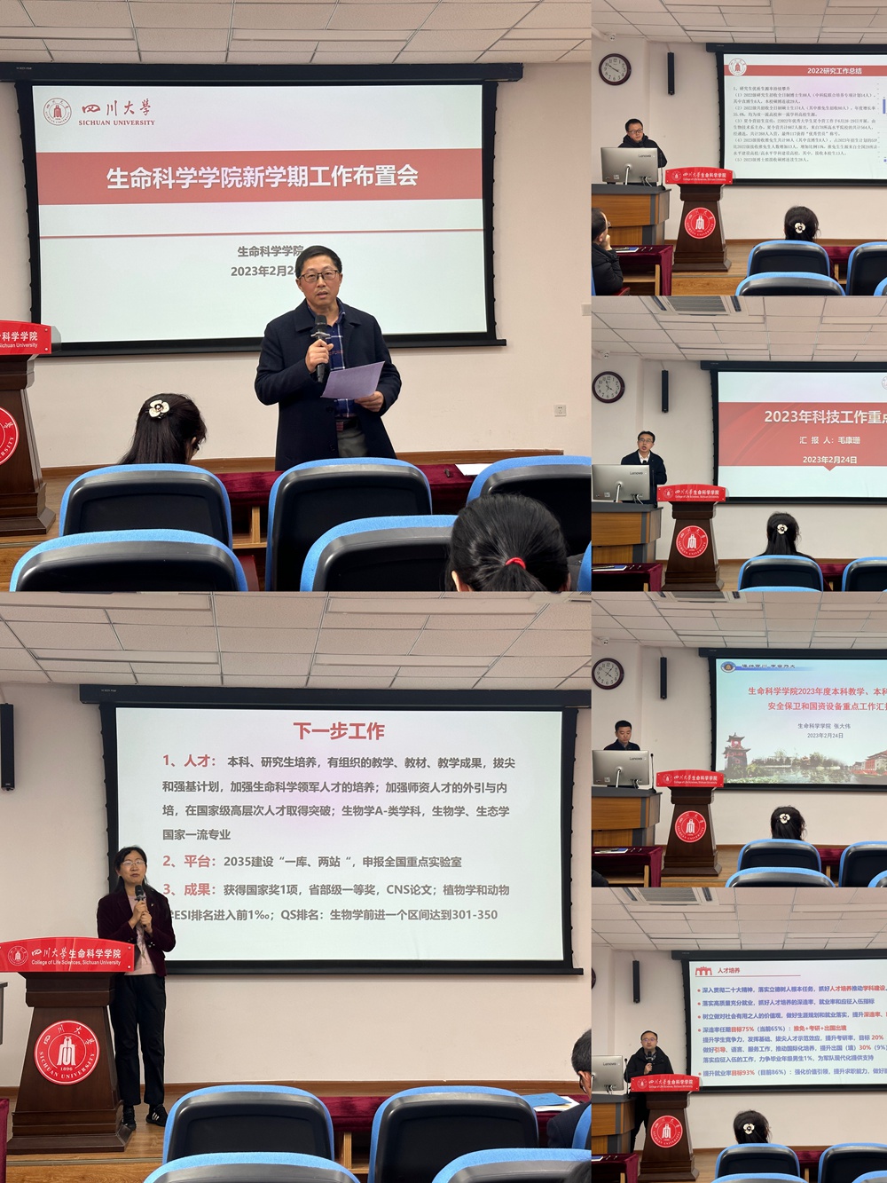 院长王红宁同志重点部署了学院师资队伍建设、人才培养、学科建设、平台建设、全国重点实验室建设和成果申报等方面的重点任务。她鼓励全体教职工要以“时不我待”的紧迫感勇于奋斗,在2023年取得更大成绩,推进学院各项重点工作高质量开展。