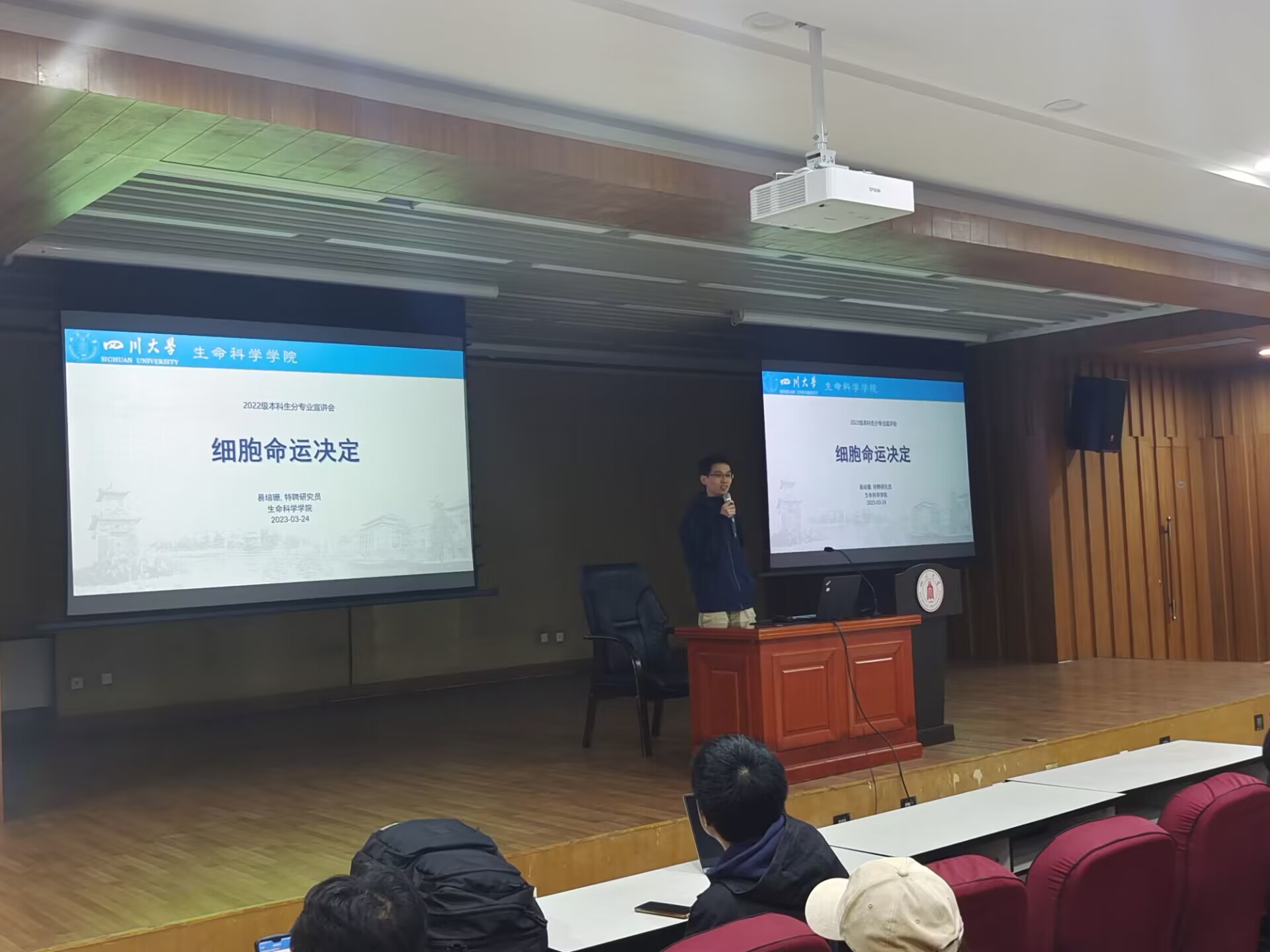 2023年3月24日下午14:00,威尼斯9499登录入口2022级大类分专业宣讲会在威尼斯9499登录入口江安校区法学院主楼报告厅顺利举行。生物科学系、生物技术系、生态系共12位教授、2022级辅导员何韵云老师以及2022级生物科学大类学生参加了本次宣讲会。