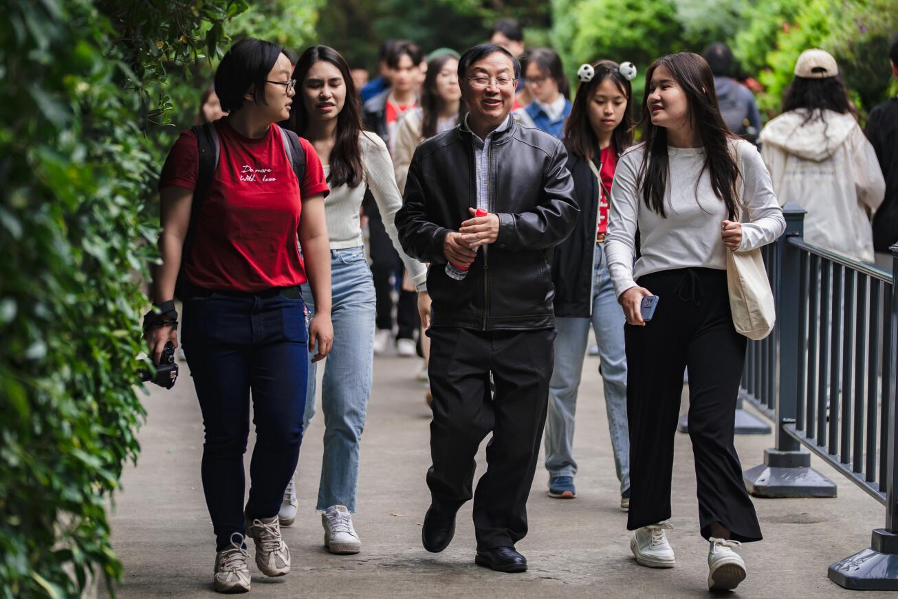 2023年4月7日下午,威尼斯官网拔尖强基学生与北京大学元培学院三十名师生共聚成都熊猫繁育基地,共话“Panda龙门阵”。
