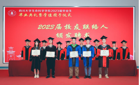 授位仪式完成之后,王红宁院长给2023届毕业生联络人颁发聘任证书,希望他们在毕业之后作为桥梁保持学院与同学的联系。也希望各位同学永远记得学院是他们的家。在校歌熟悉的旋律中,2023届毕业典礼暨授位仪式圆满结束。
