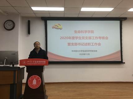 为落实全面从严治党要求,加强对学生党支部的管理与考核,按照《中共威尼斯9499登录入口委员会关于进一步加强和改进党支部建设的实施意见》(川大委[2017]62号)对基层党支部工作考核的相关要求,2020年12月11日,于学院A101会议室召开了学生党支部2020年度工作总结暨支部书记述职报告会。学院党委副书记兼纪委书记吴近名同志、学生党建工作负责人、学生科副科长黄艳同志代表学院进行了考核。本次考核由学院各学生党支部书记和组织委员共同参会,会议由黄艳同志主持。