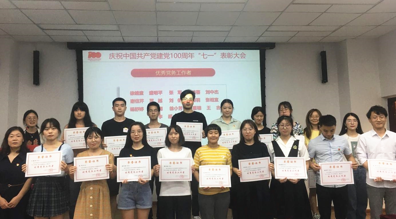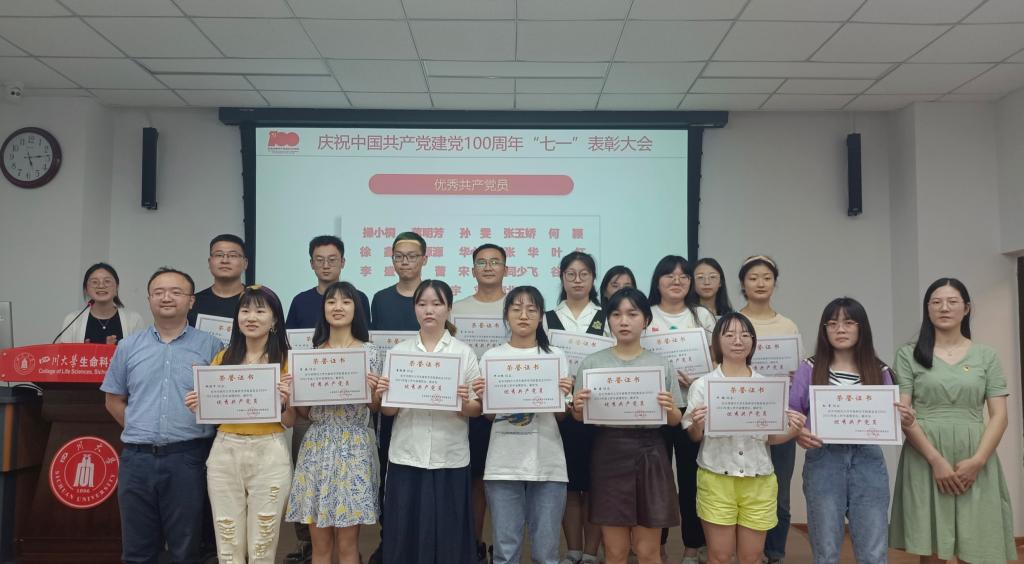 百年征程波澜壮阔,百年初心历久弥坚。7月1日下午生命科学楼A101,为庆祝中国共产党成立100周年学院举行了学生党员“七一”表彰会。学院党委副书记吴近名、学院党委委员姜丹蓉、学生党建指导教师、学生科副科长黄艳、院团委副书记何韵云、本科生党支部书记唐霞和各学生党支部代表参加了表彰会。本次会议由黄艳老师主持。