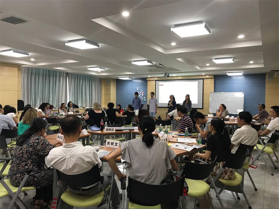 此次培训也充分体现了和以往培训完全不同的模式:培训训形式多样、活泼。在介绍相关知识时,既有常见的单人讲授,也有两人配合的讲授,还有小品形式的场景模拟;学员在学习过程中,有两人的相互讨论,有分组的共同分享,还有轮流的讲解展示。在学习过程中,老师与学员之间,学员与学员之间碰撞出思想的火花,并展开了激烈的讨论。不仅如此,参加培训班的老师们,在学习之后,及时地将学习的心得和培训的ppt都及时共享到各个课程组的共享平台,课程组的老师们也都能第一时间学习和交流,这对于教师教学交流、教师教学技能提升意义重大。总之,教学的最终目的不是单向提高学生的学习成绩,而是教师和学生一同提高与发展,教学相长才是真正有效的教学。