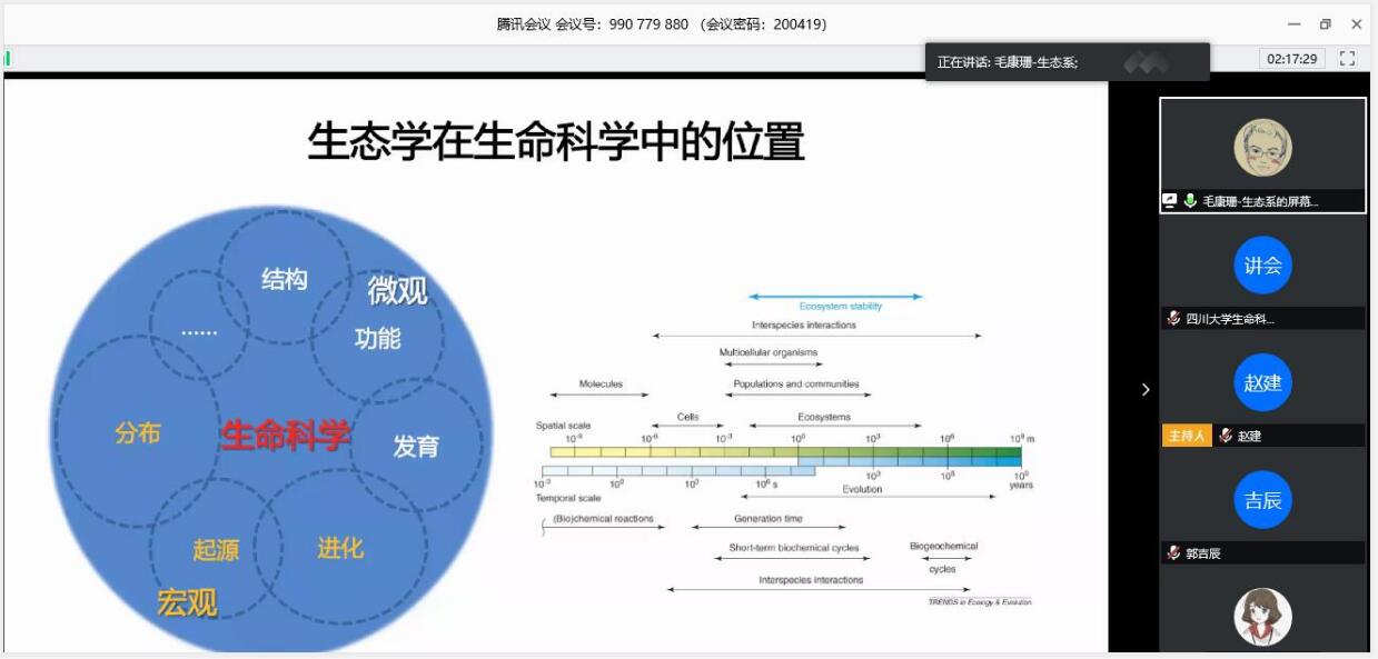 2020年4月19日下午15:00开始,学院组织召开了19级生物科学类分专业线上宣讲会,吸引了186名学生和家长在线听宣讲,宣讲会持续了3个多小时。学院现有三个专业方向生物科学、生物技术、生态学专业均安排了6位教授为大家做专题介绍,各自分享了专业研究内容、专业相关技术、专业相关转化、专业发展前景,同时对同学们专业方向选择提出了宝贵的建议。宣讲会由生物技术系主任赵建教授主持。
