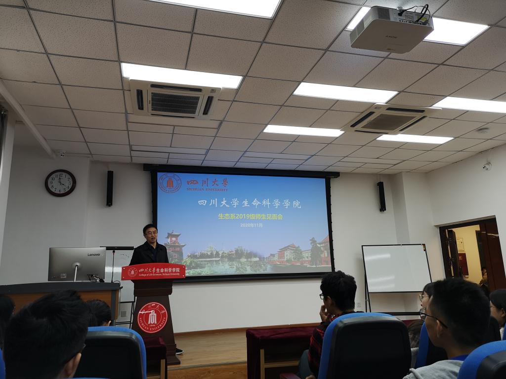 11月13日下午,威尼斯9499登录入口生态系2019级本科学生师生见面会在望江校区威尼斯9499登录入口A101会议室如期进行。生态系主任毛康珊教授因援藏任务赴西藏大学出差,见面会由生态系副主任吴永杰副教授主持。