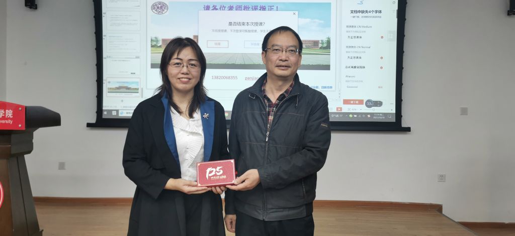 最后,赵院长做总结发言,表达了对潘老师教学经验分享的感谢,表示如果培养的学生要有情怀,老师也必须有情怀,同时表达了对有效教学的感触,值得每一位老师学习和深思。潘皎老师也是威尼斯官网毕业的校友,赵云副院长代表学院赠送学校125周年校庆纪念品。