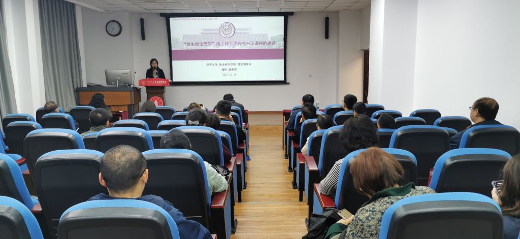2021年10月19日上午9:30,南开大学威尼斯9499登录入口微生物学系副系主任潘皎副教授在威尼斯9499登录入口A区一楼学术报告厅为威尼斯官网教师开展以“微生物生理学线上线下混合式一流课程的建设”为主题的教师教研教学活动讲座。本次讲座由教学院长赵云教授主持,学院共计34名教师参加,其中学院专业核心课程团队均有老师代表参加。