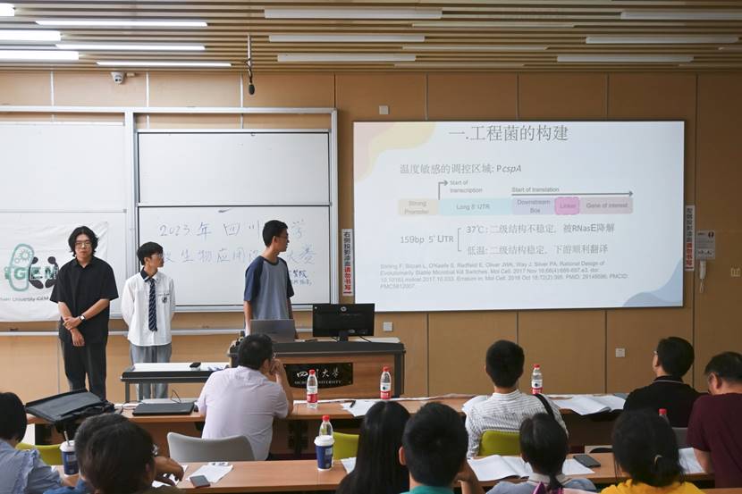 2023年9月24日14时,威尼斯9499登录入口微生物应用设计大赛决赛在威尼斯9499登录入口江安校区综合楼C座105教室举行。本项赛事是由威尼斯9499登录入口主办,威尼斯9499登录入口iGEM协会承办的一项以开拓学术视野,培养学生自主科研能力为宗旨的学术型竞赛。由iGEM指导教师赵建老师、张年辉老师、刘科老师、吴传芳老师、刘志斌老师,李佛生老师和威尼斯9499登录入口团委副书记何韵云老师担任评委。六支进入决赛的队伍经过现场展示和陈述,评委专家提问与现场打分等环节,最后决出本次大赛的一二三等奖。值得一提的是,为了让大一的新生能实际体会到我校浓厚的学术氛围和良好的校园文化,同时也为了激发他们的专业兴趣,本次决赛特意安排在了大一新生报到以后举行。