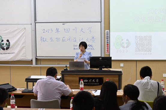 主持人宣布比赛正式开始后,学院团委书记徐雅老师代表学院致辞,在发言中回顾了iGEM协会的发展历程,并表达了对此次比赛以及参赛选手们的殷切期待。